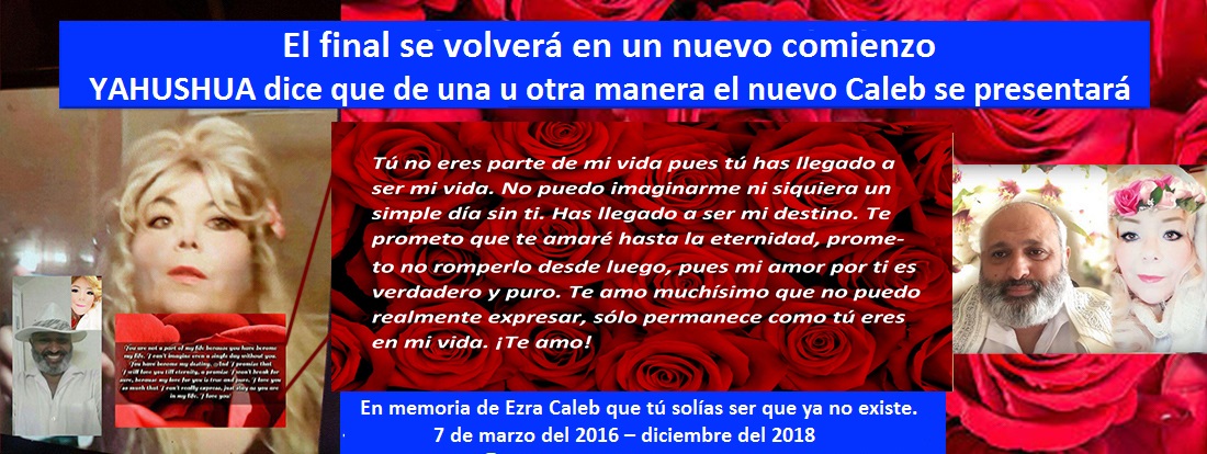 Digo adiós a Caleb Ezra y al amor y la risa que tú y yo una vez hemos compartido. Se necesitaría un milagro de YAHSHUA para ser resucitado de nuevo. Sólo quería recordarte lo que has perdido. Tú me perdiste, y elegiste tirar mi amor por los 14 de réprobos que son todos la mitad de tu edad que piensas que te están adorándote, que creen que eres un dios segundo a YAHUSHUA y que vas a juzgar la tierra. Oh, cuán lejos has caído. ¿Dónde está tu temor a YAHUVEH, YAHUSHUA, y la RUACH HA KODESH?! Me has perdido y has perdido mi respeto. Tú crees que eres el mentor de YAHUVEH .