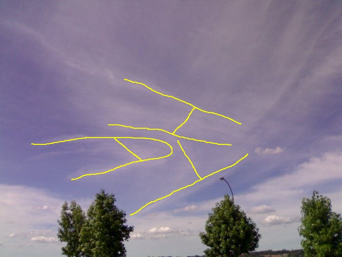 At that time, I was driving on the highway, but I could see stripes forming in the clouds.