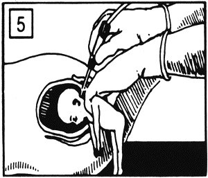 ![]() The abortionist delivers the baby's entire body, except for the head. | ![]() The abortionist jams scissors into the baby's skull. The scissors are then opened to enlarge the hole. | |