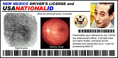 Big Brother's National ID Card A national Identification card complete with biometic identifiers, such as fingerprints or retinal scans is coming. Only it's not being called that. House Resolution 4633 the Driver's License Modernization Act of 2002 would effectively create a national ID if it's passed. The bill would require each state to adopt a uniform standard for driver's licenses and link their motor vehicle databases to a central computer registry. H.R. 4633 would "amend title 23, United States Code, to establish standards for state programs for the issuance of drivers' licenses and identification cards, and for other purposes." It would make use of "encoded biometric data matching the holder of the license or card." In other words, American citizens who have never committed any crime would be subject to fingerprinting (or something similar, such as a retinal scan) and compelled to carry a card with an embedded computer chip containing reams of personal information. What the legislation calls for is, in fact, a national ID card that every adult American would effectively be forced to carry. The only way to opt out would be to give up one's driver's license something that is not practical in an era when, outside of major cities, being able to drive is a necessity without which one cannot secure or maintain employment. And like the now-ubiquitous Social Security number which, recall, was "never to be used for identification purposes," but which is now almost impossible to conduct any business without the coming national ID/driver's license will almost certainly become an item without which one cannot open a bank account, obtain a credit card, purchase a car or home, and so on. As Eric Skrum of the National Motorists Association put it recently: "Ultimately, anybody in any state with a card reader would be able to look up your personal driving record, credit rating, Social Security number, health information, personal address, and anything else the government would force you to divulge in order to 'voluntarily' obtain a driver's license." They can call it whatever they want, but the end result will be the same. This bill should be rejected as being incompatible with a free society. |