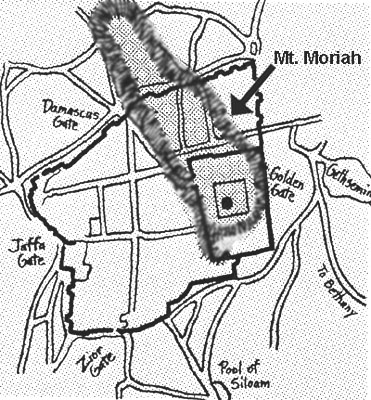 The ARK OF THE COVENANT continued... The quarry which contains the site Ron was to excavate is part of the northern extension of Mt. Moriah. On the east, south and west sides of Jerusalem are very deep valleys which protect the city from foreign invaders. But on this north side, they were vulnerable. Therefore, a "dry moat" or trench was quarried out of "Mt. Moriah" on the north side to prevent an enemy from being able to simply reach and break through the wall along this ridge. Then, at some unknown point in time, the northern portion of "Moriah", now separated from the city, was used as a stone quarry. Starting on the south end of this now separated part of "Moriah", on the western side, stone was cut out of the mountain, lowering the ground level to that of the trench which extends just outside of the north wall.