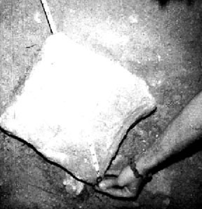 The Hole that Held the Cross?As should be expected, there was a great deal of dirt and debris everywhere. As he examined this hole and cleared away the dirt around it, he discovered that it had a large crack extending out from it. As they removed more dirt and debris, he discovered a platform-like shelf of bedrock which extended out about 8 feet from the face of the cliff, and this squarish hole was chiseled in this "shelf." There were no more holes in the platform-like shelf, so he began digging into the packed earth in front of and level with the "platform". It was about four feet before he came to the lower level of bedrock, and here he uncovered three more squarish holes chiseled in the rock in front of this "platform." His measurements showed that the elevated "platform" with the squarish hole and crack were located fourteen feet directly below the three cut-out niches in the face of the cliff, now above ground level. His earlier conclusion that the cut-out niches were for the signs stating the crucifixion victim's crime in the three languages of Jerusalem was now supported by the fact that he had found more square holes, all about twelve to thirteen inches square, cut into the bedrock -- holes he firmly believed once held crosses. The one elevated above the rest (on the shelf-like platform of bedrock), he believed, held Christ's!