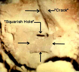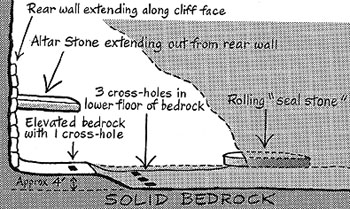 The "Crack" in the Cross-HoleThe crack extending out from the cross-hole on the elevated "platform" appeared to Ron to have been caused by an earthquake - it displayed no evidence of being chiseled.