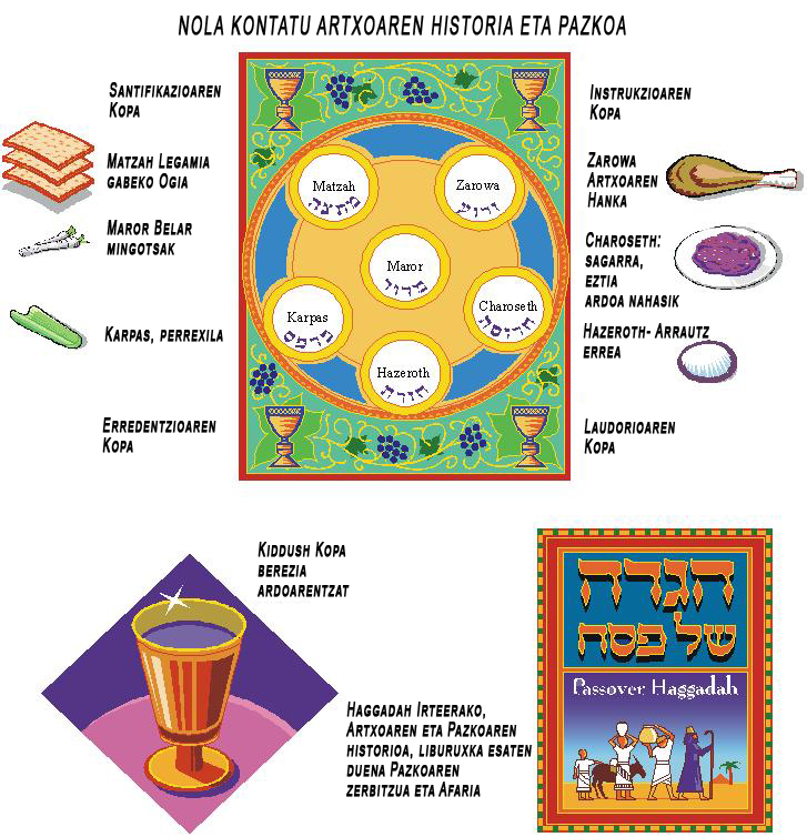 Honela jango duzue: gerrikoa loturik, oinetakoak jantzirik eta makila eskuan, abiatzeko prest; presaka jango duzue, JAUNAREN Pazkoa baita. (Irteera 12:11)