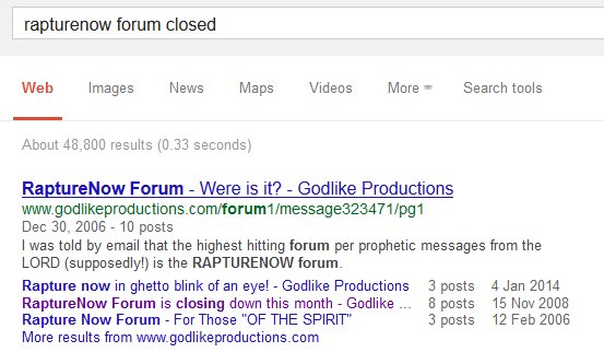 (The following screenshot shows that the rapturenow forum was closed down, and this was YAHUVEH'S and YAHUSHUA'S judgement on THEIR enemies.
