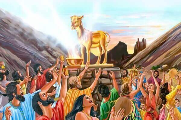 Zapitajte se: po čemu je klanjanje i obožavanje lažnog boga koji vam puni usta zlatom išta drukčije od klanjanja zlatnom teletu? Zapitajte se: kada sam dao Zapovesti Mojsiju napisane na kamenu, napisane MOJIM prstom na kamenu, ne na zlatu – zapitajte se zašto ih nisam zapisao na zlatu? A ipak, u isto to vreme satana je ispunio srca MOG Naroda i oni su poklanjali zlatnom idolu. Ovo nije ništa drukčije.