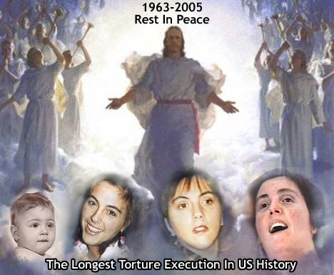![]() NO EXCUSE, AMERICA! We are a criminal nation for DEHYDRATING Terri to death. A nation of TORTURERS and MURDERS! Starvation is a war crime banned by the Geneva convention. But...that didn't stop us, did it? This was even WORSE! Terri died of THIRST! See how long you can go withot drinking anything. Then imagine doing it for 13 DAYS!